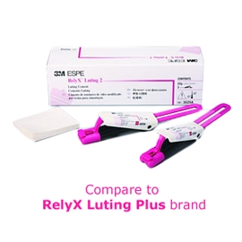 RelyX Luting 2 - Refill - Resin-Modified Glass Ionomer Cement, 2 - 11 gram Clicker Dispensers, Instructions. For use with Metal crowns, Inlays & onlays, Porcelain-fused-to-metal crowns & bridges, All-zirconia and All-alumina strengthened core ceramic restorations, Endodontic pins & posts, Orthodontic appliances. |
